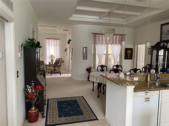 Well-maintained popular Formal Doral floor plan, close to club house amenities, rear of the house overlooks large open area for plenty of privacy. Granite kitchen counters, acrylic windowed, tiled porch, eat-in kitchen, split bedrooms and large office/den, updated toilets, newer glass-enclosed shower in guest bathroom. Furniture and golf cart available, negotiable or outside of closing.