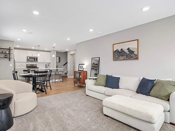 Stunning end-unit townhome built in 2022 in desirable Maple Grove! This better-than-new construction gem features 3 spacious bedrooms on one level, 3 bathrooms (including private owner's bathroom), and 2 spacious living spaces. The crisp and modern kitchen features quartz countertops, stainless steel appliances, tile backsplash, and large center island with breakfast bar. Enjoy tons of natural light through-out and your private patio with adjacent green space. Flexible loft space in the upper level serves as a 2nd living room, office space, work-out area, etc. Large primary bedroom with attached private bathroom (dual sinks) and expansive walk-in closet. Convenient 2nd floor laundry located near bedrooms for ultimate functionality.