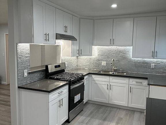 New stoveModern styleTop quality porcelain tileGlass sliding doorFancy glass back splashNew cabinetsLighting under cabinets