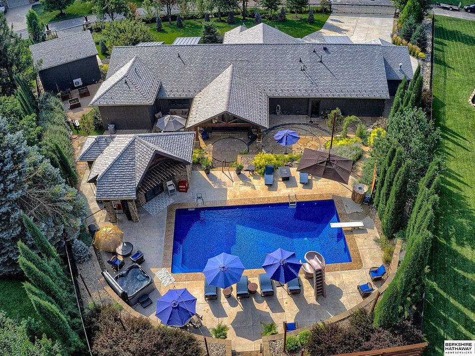 Completed in 2022, this extraordinary ranch estate showcases the unmatched craftsmanship of ADC, McKay Lighting, and Lanoha Landscape Design. Set on nearly an acre with lower Douglas County taxes, this resort style property offers the serenity of country living minutes from Omaha’s best amenities. Featuring a DaVinci Class 4 roof, over $1M in landscaping, heated 20’x40’ pool, 4224 sq ft main plus 279 sq ft renovated pool house/casita of additional living space for a total of 4503 sq ft, and 9-car garage capacity with climate control. Inside, enjoy a gourmet Thermador kitchen with hickory cabinetry, custom leathered granite, and designer finishes. The luxurious primary suite boasts a spa-like bath and massive custom closet. Additional highlights include SONOS, commercial Kohler generator, security system, multiple indoor/outdoor living spaces, and premium materials —offering a truly turnkey, high-end lifestyle. Pre-Inspected. Transferrable DaVinci Roof Lifetime Warranty.