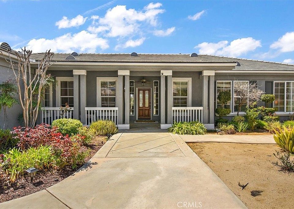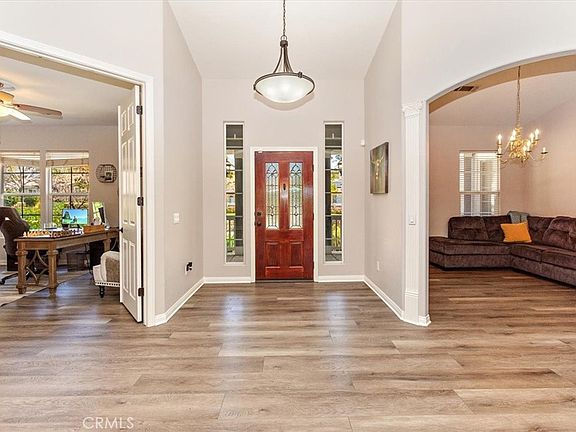 This exquisite SINGLE STORY Yucaipa home with nearly a 4200 Sq Ft single story foot print perched on the hill of North Bench features phenomenal year round views of of the valley and mountains! Newly developed back yard is an ENTERAINERS DREAM!! Built in BBQ and 3 door refrigerator with dual firepits, copious lighting and TV completes this BBQ area. Enjoy playing horseshoes with the family! The backyard has 3 different areas to enjoy with 2 fire pits. From a tranquil sitting area boasting phenomenal mountain views to an additional entertaining firepit area, a fantastic pool area, and as well as copious amounts of fruit trees including Oranges, Myer Lemon, figs, plums, blackberries, pomegranate, and apple. Are you an RV enthusiast? There's plenty of room to secure your toys!! Inside the home you'll enjoy a WIDE OPEN split floor plan with cathedral like ceilings. The master suite has a wide open space and let’s not talk about the master bathroom!! With a double head in the shower, a wonderful jetted tub and 2 separate sinks. The second bedroom has an adjoining en-suite bathroom. With a prominent layout, you'll enjoy an office, formal sitting area, formal dining room and a media room! The three car garage is both deep and tall! New floors throughout the home! Dont miss out on this fantastic Yucaipa home!