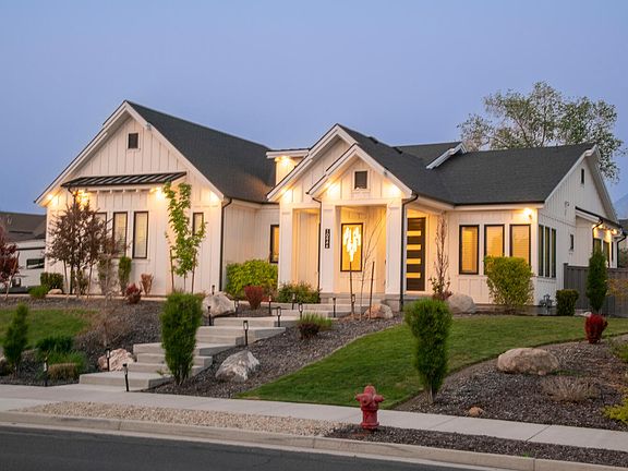 Gorgeous farmhouse with modern interior flare. The stunning curb appeal and presence of this home feels like a perfect home in every way. From the grand entrance and chandelier to the open concept living room and chefs kitchen this home is a 10. The kitchen has double wide fridge, extra fridge and wine fridge, gas stove and high end cabinets and countertops. The master bedroom is huge with a stone fireplace and on suite master bath with separate shower and soaking tub and extra large walk in closet. The home has plantation shutters throughout the main level and lots of light. The basement is fully finished with a kitchenette and gorgeous full bath downstairs. Garage is heated and home has a generator. Buyer to verify all info. Owner/Agent.