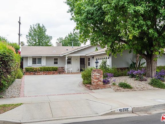 Sweet and adorable home on a cul-de-sac street in wonderful Granada Hills neighborhood. Enchanting and bright traditional with nice curb appeal set back from street off long, wide driveway leading to welcoming covered front porch. Featuring 3 bedrooms and two baths with most rooms looking out to greenery and tree views. Living and dining room combination with laminate wood floors, marble wood burning fireplace, designer color paint, ceiling fan light fixture and French doors opening to lovely covered patio, perfect for entertaining and dining al fresco. Sunny eat-in kitchen. Large back and front yards with drought tolerant landscaping, several fruit trees and rose garden. Attached two car garage with extra storage and direct entry. This is a very Zen, tranquil and calming home with dual paned windows, copper plumbing and alarm system. A must see! Welcome home. No sign on property.
