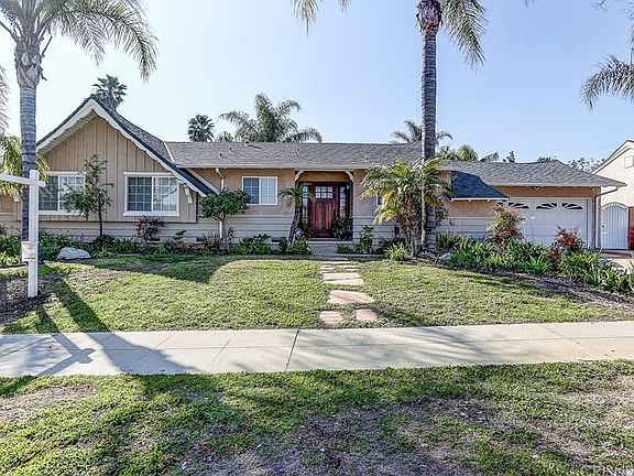 Fabulous completely remodeled 3 bedroom 2 bath Porter Ranch pool home, first time on the market in 30 years. Nothing was spared when redoing this home. Features include solid core doors, with a custom-built front door. Milgard double pane windows and recessed lighting throughout. Ceiling fans in bedrooms. Beautiful hardwood floors and crown moldings. Gas heater, 5 Ton AC and water heater have all been replaced in the last 2-3 years. Kitchen features include custom oak cabinets, granite counter tops, Wolf brand gas range and Convection oven. Sub-zero fridge and stainless-steel sink and dishwasher. Spacious living room and adjacent dining area with wood accented ceiling and beams with double sliding French doors that lead to the backyard. Master bedroom boosts a walk-in custom closet, bay window and a bench seat with storage, sliding French door to the backyard and custom-built entertainment center. The master bathroom includes bubble tub, and an oversized glass enclosed shower. Make your way out to the backyard and find an addition to the home that can be used as an office/bonus room/craft room with built in storage, tile floor, wood accented ceiling, and a bay window with bench seat. House also includes a separate laundry room with utility sink and an attached pantry. Backyard includes a covered patio, flagstone flooring, pool and tropical landscaping.