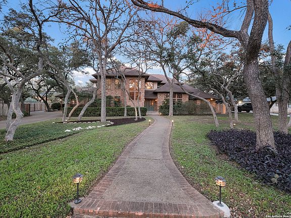 Welcome to your new custom dream home in the highly sought after Hunter Ridge Estates! A one of kind Helotes estate on close to one wooded acre of mature trees, a sparkling pool, & a stunning 2-story traditional home with over 4200 sq ft. This stunner features 4 large bedrooms, 5 bathrooms, 3 living areas, office, wet bar, & RV/Boat parking. The home sits back comfortably in the lot with a circular drive entrance. You are instantly welcomed in with exquisite wood floors, a warm main living room featuring a cozy brick fireplace, & a beautiful view to the expansive backyard. You and your loved ones will gather often in the gorgeous kitchen with granite counters, custom cabinets, large island, & brkfst bar/desk area. The downstairs oversized master bedroom features exterior access to the back patio and a serene master bathroom. Upstairs you will find 3 additional bedrooms & lounge area with a recently remodeled bathroom featuring beautiful blue glass subway tile. You will never be short of storage in this home. There are endless custom built-ins throughout. The exterior of the home is an entertainer's dream. The backyard oasis has an abundance of mature trees and an extra large pool with adjoining spa that will wow your guests. The wide covered patio is perfect for grilling and extra seating. This is the perfect home for the outdoor enthusiast with parking GALORE for all your cars, boats, RVs, trailers, etc. This is truly the perfect estate home. An upstairs/master bedroom flooring allowance is negotiable with offers. You will not want to miss this one! Schedule your showing today!