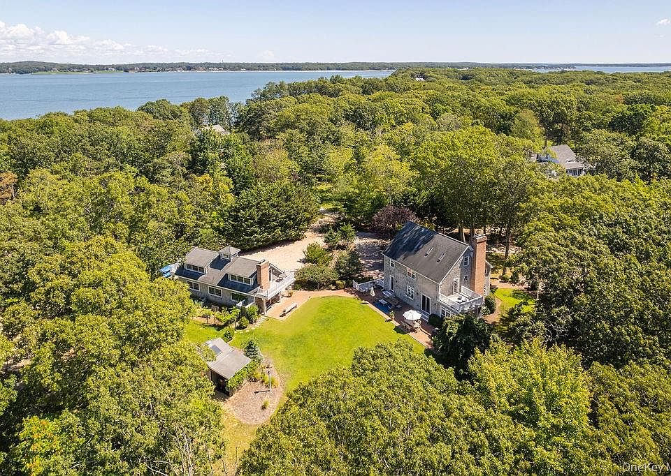 Set on over two secluded acres within the coveted Shellfisher Preserve association near Paradise Point, this extraordinary estate offers sweeping water views from the backyard, kitchen, and upstairs rooms. A private deeded beach and your own deep-water dock is just a short pathway away. The property is graced by a pristine tidal lagoon, preserved and maintained by the Peconic Land Trust. The traditional-style residence, custom built from the ground up by its sole owner, features four bedrooms—three upstairs and a potential guest suite or office on the main level. Expansive sundecks capture the water vistas, while the spacious primary suite provides a serene retreat.
