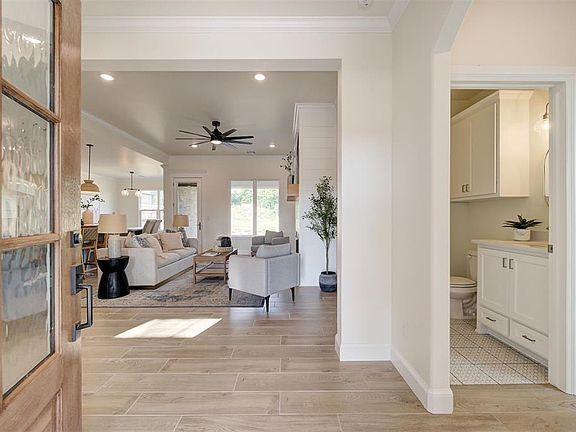 Covered front porchPrivate secondary bedroomsSpa-like bathWood-look tile flooringQuartz countertopsGas fireplaceCustom fireplace mantle