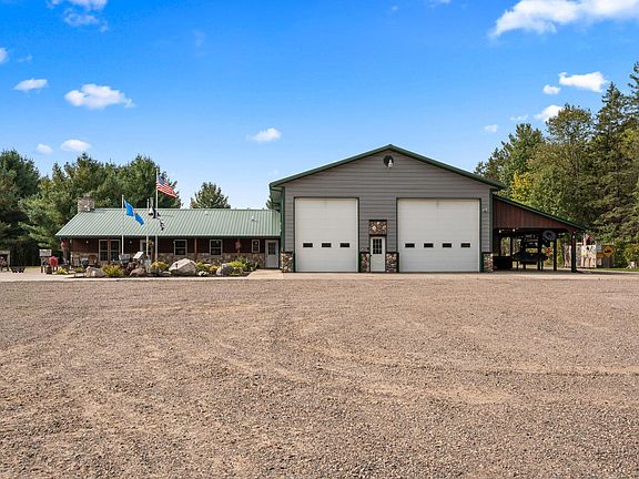 Private Retreat on 59 Acres – Just an Hour from the Twin Cities. Discover unmatched privacy and endless opportunities with this one-of-a-kind shouse property set on 59 acres of prime recreational land. Tucked over 1,700 feet off the township road, this retreat offers peace, seclusion, and an abundance of wildlife, including deer, bear, turkeys, and more—perfect for outdoor enthusiasts and nature lovers. The property features a 40’ x 96’ heated workshop with 16’ sidewalls, in-floor and wood heat, four overhead doors, and a mezzanine for extra storage—ideal for hobbyists, small business owners, or anyone needing serious workspace. The living quarters span 26’ x 50’ and include forced-air heat, a wood-burning fireplace, and a free-standing wood stove, creating a warm and inviting home atmosphere. Additional entertainment space comes with an 18’ x 44’ man cave with bar, seamlessly connected to an 18’ x 40’ lean-to with concrete floor, perfect for gatherings or extra storage. Step outside and enjoy over 8,500 square feet of concrete patios, aprons, and sidewalks, offering plenty of room for outdoor living, grilling, and entertaining any time of day. The land itself is just as impressive—approximately 6 acres of tillable ground, with the balance consisting of recreational trails and woods for ATVing, hunting, or exploring. The manicured yard provides plenty of space for a garden or potential grazing for horses or livestock. Conveniently located just minutes from Amery Hospital and offering high-speed internet, this property allows you to work from home without compromise. An additional 40 acres is available for purchase if you desire even more room to roam.