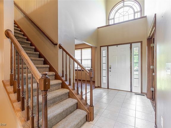 Nestled in Vermilion, a quaint coastal city on the shores of Lake Erie, prepare to embrace lake breezes, sunset strolls along the coast, and a relaxed Vermilion lifestyle just moments from the quaint downtown. The brick-front façade of this home welcomes you to a premium lot that backs to a serene, wooded sanctuary, offering privacy and a sense of timeless elegance. Inside, soaring ceilings elevate the two-story foyer and great room, flooding the space with natural light that makes daily living bright and effortless and entertaining a joy. The chef-inspired kitchen anchors the home with modern white cabinetry, abundant countertop space, and a generous eat-in area that overlooks the deck and lush yard, while easy access to the adjacent dining and living spaces keeps gatherings seamless. The main floor includes a fifth bedroom with a full bath—perfect for guests or a quiet in-law suite—plus a private office with French glass doors opposite to the dining room and a convenient first-floor laundry, all arranged to maximize flow and flexibility. The basement is fully finished with half a bath and the capacity to become a full bathroom, presenting a sizable canvas for a future media room, gym, or play space, with ample storage. Outdoors, a spacious deck with a motorized sun awning beckons warm evenings and a hot tub for snowy days, alfresco dining, and sunset-watching, while the surrounding yard and wooded backdrop deliver serene privacy. Additional highlights include energy-efficient windows, recessed lighting, premium millwork, and a thoughtfully designed layout that balances luxury finishes with everyday practicality, making this residence not just a home but a refined lifestyle in Vermilion’s most coveted community. This home blends small-town charm with easy access to marinas, cute shops, and unique lakeside dining in a city that has been voted as Ohio’s Best Beach Town on the East shores of Lake Erie.