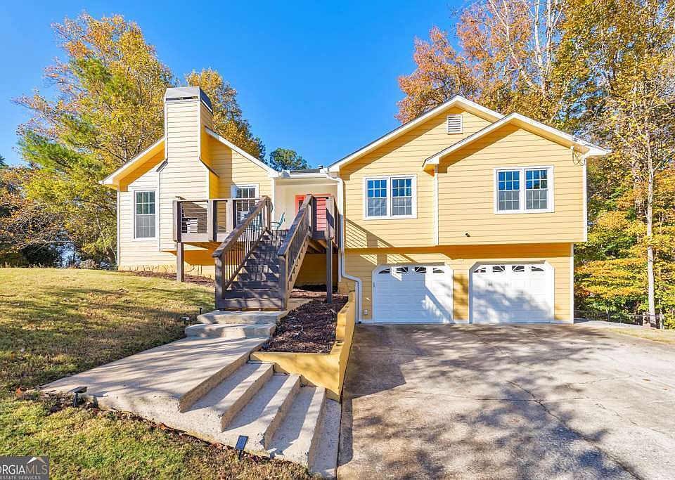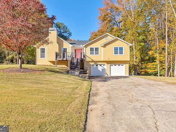 Welcome to this beautifully maintained and thoughtfully upgraded 5 bedroom, 2 bathroom home in the sought-after Valley Brook community, perfectly situated in the heart of Woodstock. A charming covered front porch sets the tone as you step inside to a bright fireside family room featuring vaulted ceilings and an abundance of natural light. The family room flows seamlessly into the separate dining room highlighted by elegant bay windows. The updated kitchen boasts newer appliances-including a gas range-stone countertops, and ample cabinet space. The main-level primary suite offers vaulted ceilings, an updated ensuite bathroom with double vanities and a sleek glass shower, plus private access to the back deck. Two generously sized secondary bedrooms on the main level share a full hall bathroom, and a convenient laundry closet completes the floor. The fully finished basement expands the possibilities with 2 additional bedrooms, extensive storage, walkout access to the backyard, and entry to the 2-car garage. Relax or entertain on the rear deck overlooking the spacious backyard greenspace. Situated on a generous 0.65-acre lot with no HOA, this home offers both privacy and convenience. Enjoy easy access to Downtown Woodstock, Downtown Canton, I-575, and a wide array of shopping, dining, and entertainment options. This is Woodstock living at its best!