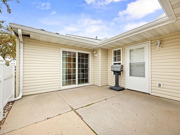 One-level 2 bed, 2 bath home featuring a bright sunroom, spacious living room with gas fireplace and vaulted ceilings, and kitchen/dining area. Primary suite offers a walk-in closet and private ensuite. Sliding doors from the sunroom lead to your outdoor patio. Enjoy easy living with association-maintained lawn care and snow removal. 2-stall garage. Convenient, low-maintenance lifestyle in a 55+ community!