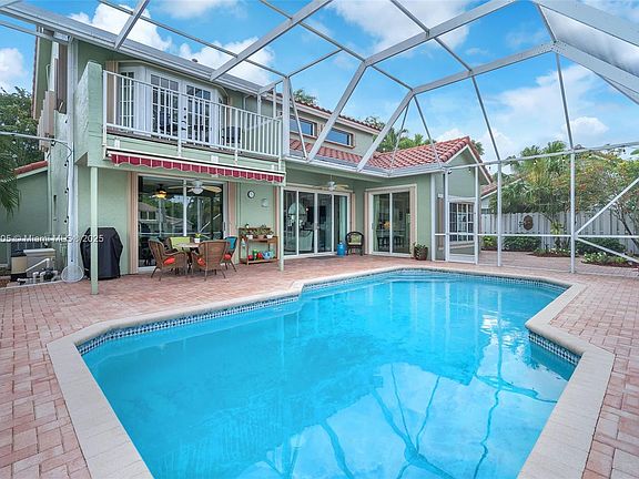 Nestled in the gated community of Laguna Springs, this stunning 3-bedroom, 2-bathroom home sits at the end of a peaceful cul-de-sac, offering privacy and elegance. Inside, you'll find beautiful bamboo and parquet wood floors, a gourmet kitchen with white 36" cabinets, an undermount ceramic sink, quartz marble-style countertops, and double-sided cabinets for extra storage. A sleek gray and white New York subway tile backsplash adds a modern touch. The spacious master suite provides comfort and relaxation. Enjoy access to your private balcony breathtaking views of your own private pool and lakeview. Just 5 minutes from Weston Town Center, enjoy easy access to dining, shopping, entertainment and mayor highways. Don’t miss the chance to live in one of Weston’s most desirable communities!