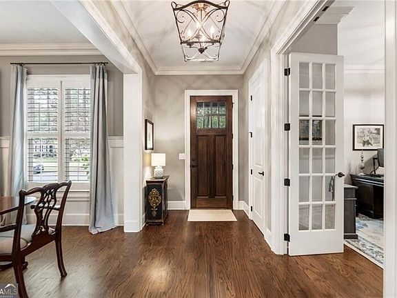 Welcome home to 1095 Lunsford Circle - a sun-drenched, entertainer's dream in one of Alpharetta's most desirable communities. Situated in front of a wide open green space with lawn maintenance included by the HOA, this home offers effortless "lock-and-leave" living with timeless style and modern comfort. Zoned to top-rated schools and just minutes to Avalon, Downtown Alpharetta, and the charming shops and restaurants of Crabapple - this one truly has it all. Step inside to soaring 10-foot ceilings, plantation shutters, custom trim, and windows galore. The open-concept main level is centered around a chef's kitchen with granite countertops, a large island, double ovens, stainless appliances, walk-in pantry, and a clear view to the fireside great room. French doors lead from the great room to a private backyard oasis featuring a patio with outdoor fireplace - perfect for fall evenings or weekend gatherings. The heart of this home is its exceptional indoor-outdoor flow. French doors from both the foyer and the kitchen also open to the covered back patio, giving you multiple ways to enjoy the fully fenced backyard space. With everything open, it's an ideal setting for entertaining or just enjoying the breeze. The main-level primary suite is filled with natural light and offers a spa-inspired bath and a custom walk-in closet. Upstairs, you'll find a spacious loft along with three additional bedrooms and two full bathrooms - offering flexibility for guests, work-from-home, or play space. Additional features include a mudroom with built-in drop zone, a separate laundry room, a fenced side yard, 3-car garage, and whole-home surround sound. With no yard work, an unbeatable location, and a layout designed for both daily ease and weekend fun. 1095 Lunsford Circle is the lifestyle upgrade you've been waiting for.