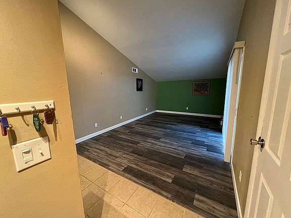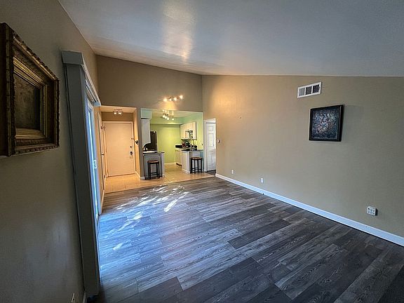Step inside to discover a smart and inviting floor plan. The kitchen boasts crisp white cabinetry, granite countertops, and new appliances, creating a space that’s both stylish and functional. The open living and dining area with a vaulted ceiling offers plenty of room to relax or entertain, with a sliding glass door leading to a private balcony overlooking the pool.