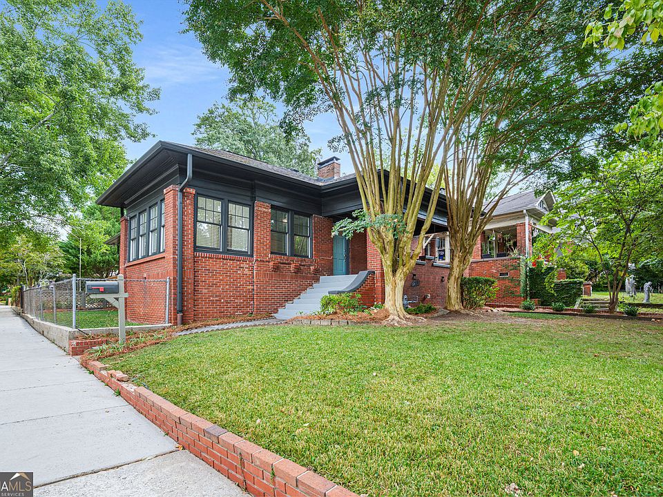 Just steps from Piedmont Park and the Atlanta Beltline, this renovated Virginia-Highland classic sits on a level corner lot with driveway and 2 car garage off of neighborly Elmwood Drive. With plentiful natural light, this home welcomes you with a spacious living room featuring a gas log fireplace, large sunroom ideal for an office or sitting room, freshly refinished hardwoods throughout and all new light fixtures. Perfect for entertaining, the large sunny dining room is just off the kitchen and flows into the living room. The chef's kitchen features granite countertops, stainless appliances including commercial Thermador range with vent hood, single basin sink, breakfast nook with built-in cabinetry, pantry and adjacent laundry closet for extra storage. French doors open directly to the rear deck and fenced back yard. The primary suite in the rear of the home is roomy with generous closet space including ELFA closet systems. Across the hall is the second bedroom which also has a closet with ELFA system. The Jack and Jill guest bath serves both secondary bedrooms with subway tile bath surround, brand new vanity and LVP flooring. The third bedroom features a decorative (original coal burning) fireplace and French doors leading to the front porch. The back yard is fully fenced, including a separate side yard area and has a deck and gorgeous slate patio, complete with plumbing for a future outdoor kitchen. A natural gas line nearby can be accessed to connect a grill. Additional highlights include: Front porch with swing, fresh paint throughout interior and exterior, 9.5' ceilings, basement & attic storage, 220 volts available in the garage for car chargers, fresh landscaping and easy access to interstates. Just a short walk to Piedmont Park, the Beltline, Trader Joe's, and Midtown High School, this home blends timeless Virginia-Highland character with thoughtful updates and a location that puts the best of Atlanta at your doorstep!