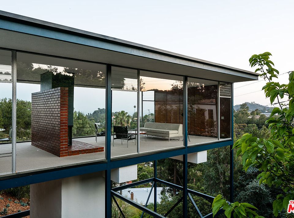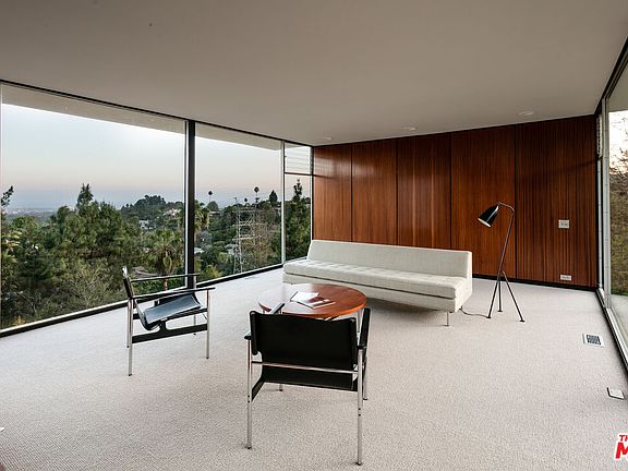 Presenting the Smith House, 1958. Craig Ellwood, Architect. This steel and glass pavilion perched on a hillside offers expansive westward views reaching the Pacific Ocean. Widely published throughout the years, including Arts + Architecture Magazine, the "T" shaped residence features two bedrooms and two bathrooms nestled along the property. The main living area cantilevers two and a half stories over the Los Angeles hillside. Inside, red brick, warm wood paneling, and floor-to-ceiling glass windows create a timeless feel of California modernism. Two outdoor terraces maximize indoor-outdoor living. As night falls, the home transforms, appearing to effortlessly float above the hillside, a testament to Ellwood's visionary design. Recently restored under Ellwood Associate James Tyler, here is a rare opportunity to own a notable piece of architecture, in the coveted Crestwood Hills neighborhood of Brentwood.