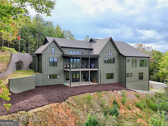 Introducing a newly constructed home that offers breathtaking layered blue mountain and lake views. Perched high on a ridge above the crystal clear waters of Lake Rabun, this mountaintop home offers 6,400 square feet of luxury living. Every room in this home is designed to bring the outside in, with floor-to-ceiling Pella windows offering views. The natural oak floors and light decor create a warm and inviting atmosphere. The open foyer and great room offer views all the way through the house to the central porch area. The porch, with retractable screens, ensures your comfort. The expansive kitchen features state-of-the-art appliances, quartzite countertops, and custom-built oak cabinetry. A wall of windows allows for plenty of natural light and extraordinary views. Doing the dishes will be a pleasure! The primary suite serves as a serene retreat, complete with a luxurious bath featuring heated floors, a soaking tub, and an oversized shower. Two walk-in closets with built-ins keep your personal items beautifully organized. Additional guest rooms and a spacious bath area provide a separate space that guests will appreciate. The main level includes an oversized garage built to accommodate a large SUV or truck, along with space for a second vehicle and an EV Charging station. A sunlit laundry room makes folding the laundry a pleasure, and the walk-in pantry is equipped with an additional refrigerator and freezer. Oak-built-ins line the hallway, maximizing storage space. On the terrace level, you will find an additional family room, perfect for movie nights, as well as a flex room that includes a Murphy bed and its own luxurious bath. An end guest room and bath offer private and comfortable space for additional family or guests.. The lower-level workshop, which has its own separate driveway and garage, provides an ideal hobby area for the entire family. This custom-built home was designed for full-time living and features thoughtful design that enhance comfort, safety, and sustainability. Notable elements include a whole-house generator, a water storage system for operation during power outages, and a water filtration system. Created by experienced homeowners with extensive knowledge from previous projects, this home is truly a forever home. Save yourself the time and uncertainty of building a custom home- This beautiful property is waiting for you!