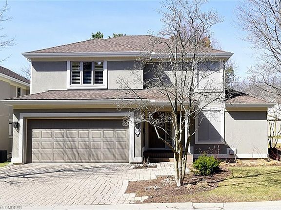Beautiful Detached "Shadow Creek" condominium home offering easy living. If you are looking for a home with "Distinction" located in a private enclave in Tyandaga where life is comfortable, look no further. This 2,200 sq ft above grade home with a fully finished lower level will certainly grab your attention. 2+1 bedrooms, 3+1 baths + main floor office, full double car garage and featuring NEW stainless appliances, professionally painted, completed california shutters, vaulted ceilings and a walk out to a deck with privacy and lush surroundings. Classically presented, the home is bright, fresh, easy flowing and offers a uniquely architectural custom design. Open concept kitchen, island, 2nd walk out to deck, gas fireplace, separate dining area, main floor laundry and so much more... The lower level offers a great recreation room, fireplace, extra bedroom/washroom and a cedar lined sauna. Condo fees cover: Build Ins, Common areas, Visitor Parking, Exterior Maintenance (ie: windows, doors, roof etc...) professional landscaper, sprinkler system, grass and garden upkeep, snow removal. Located close to Hwy's, shopping, transit, golf, dining and parks. Upgrade insulation R60. A must see!