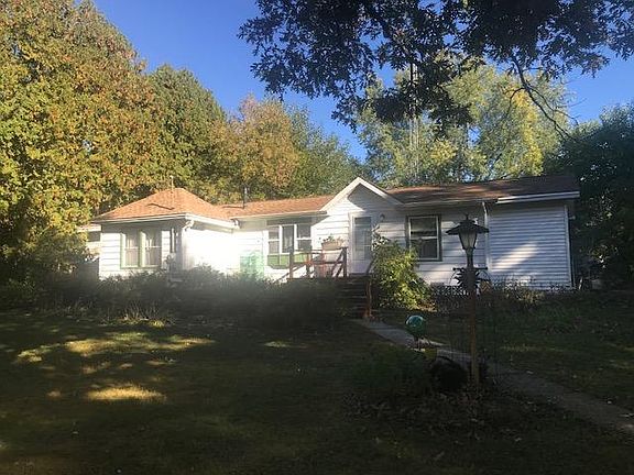 Hurry! Great starter home! Private 1.23 acre parcel surrounded by mature trees! Detached 3 car garage perfect for shop area or extra storage! Front deck at entry! Spacious eat-in kitchen with oak cabinetry, planning desk, roll out drawers, pendant lighting and all appliances stay! Cozy living room with decorative fireplace opens to the kitchen! Gracious size master bedroom with 2 closets! Full bath with deep whirlpool tub/shower combo! Convenient 1st floor laundry! Partial unfinished basement for extra storage! Roof approx. 10 years old! Furnace/A/C 8 years old! Home being sold in AS IS condition! Some TLC needed but great lot! Country living! Bring offer!