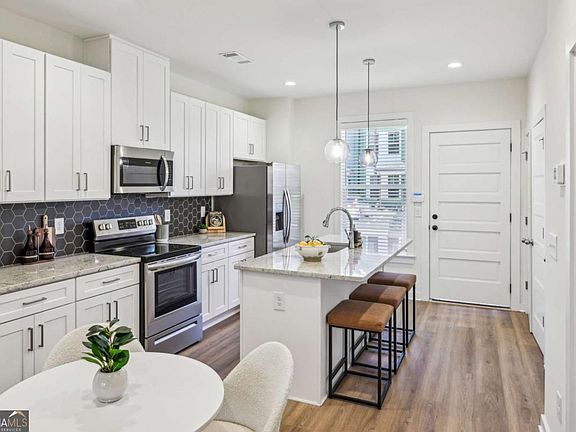 This bright 2-bedroom, 2.5-bathroom townhome offers the perfect mix of style and comfort with an open-concept layout, spacious kitchen island, pantry, and included appliances! Enjoy morning coffee or evening hangs on your front and rear porches, and relax in light-filled living spaces designed for easy everyday living. Located just steps from the Westside BeltLine Trail and Oakland City MARTA, this home keeps you connected to the best of city life. Eligibility: Reserved for buyers meeting 80% Area Median Income (AMI) - up to $60,240 for 1 person, $68,800 for 2, $77,440 for 3, and $86,000 for 4. Buyers must qualify with a preferred lender and complete the Atlanta Land Trust's homebuyer education session. This is the last home at this price - don't miss your chance to own a move-in-ready home and start building equity in Oakland City today! (Pictures are of a model home)