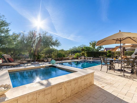 Primary suiteStunning mountain sunset viewsRo systemFruit treesBreakfast nookBeautiful extended travertine patiosPergolas with misting system