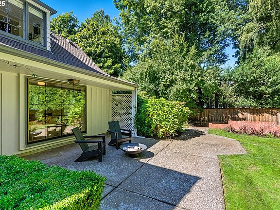 Enchanting English cottage on a quiet tree-lined street in the heart of Dunthorpe/Riverdale School neighborhood does not disappoint! This consummate storybook home features authentic detailing including leaded glass windows, and original millwork with wainscotting & wall paneling, window seat, built-in buffet, 2 fireplaces and more. Bedroom with full bath on main level plus charming office with fireplace. Upstairs lies a huge bedroom that can also service as primary, plus second bedroom and full bath. Main level laundry room doubles as mudroom with large storage and sink. Fresh paint inside and out, new carpet and newer electrical & HVAC components. The nearly third of an acre level & sunny parcel offers patio, sweeping lawns, classic gardens, and tool shed. A true treasure near Tryon Creek State Park and Riverdale School District.
