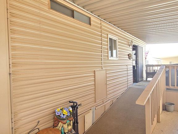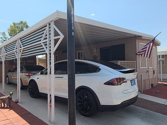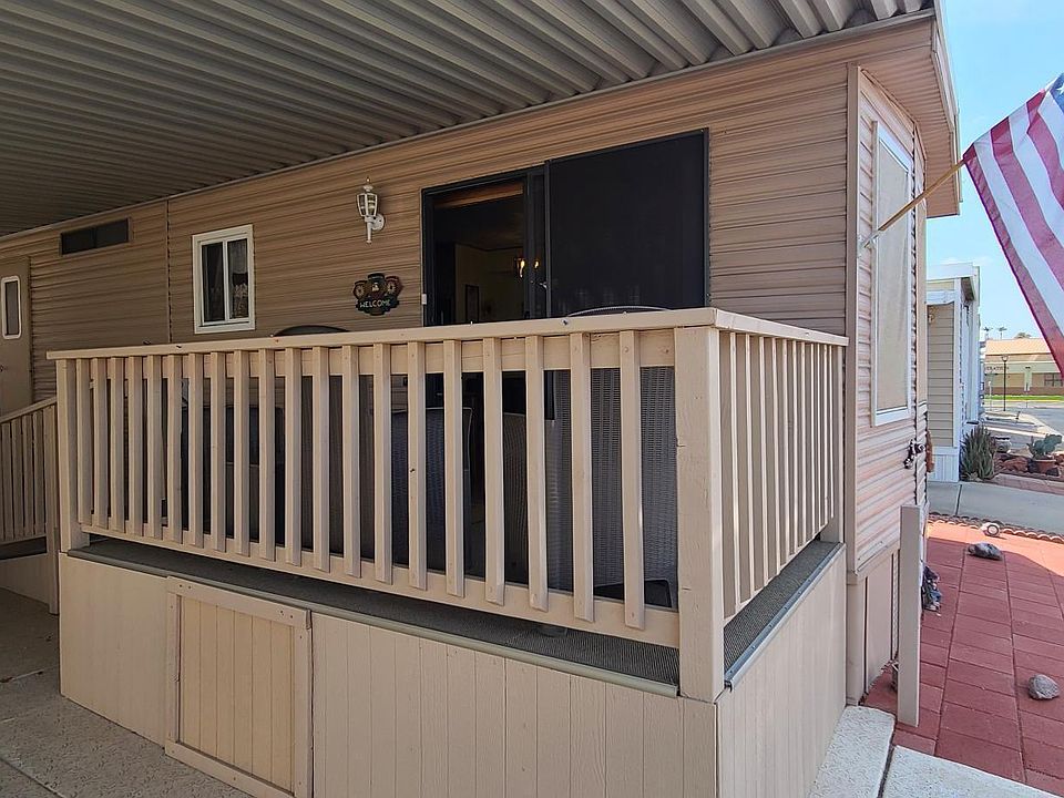 This is an exclusive guarded entry beautiful adult community in Sun City! Freshly painted in 2022. This home has PRIME LOCATION, walking distance from community center(only 5 spots away). Wheelchair ramp accessible. 2 car open space carport. Window shutters throughout the unit. Good interior space with open floor plan. All appliances convey. Private front patio perfect for relaxation.