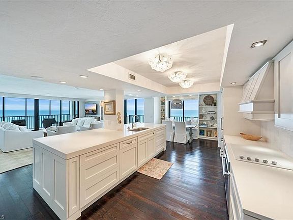 Nantucket meets Naples! Immerse yourself in paradise at this stunning 3 bedroom, 3 bathroom beachfront condo located at Vanderbilt Gulfside on Vanderbilt Beach in Naples. Renovated from top to bottom in the casual coastal design, this end unit on the 11th floor is being sold turnkey furnished and offers privacy, a balcony for each bedroom as well as breathtaking views of the Gulf of Mexico. Step inside and discover a light-filled haven designed for ultimate comfort. Entertaining is a pleasure in the renovated, drawer design custom kitchen, boasting high-end integrated appliances and designer finishes, including hand glazed tile backsplash and thick white Quartz countertops. The dark hardwood floors provide a striking contrast to the light coastal finishes. All windows and doors are impact rated for hurricane protection. Other upgrades include shellstone tile on all balcony space, new interior doors and trim, custom electric shades, Sonos built in entertainment system, Culligan water system and Palacek light fixtures. The high end furnishings were carefully selected for the space and include custom sofas and beds (each bedroom has a King bed, one has a California King). Wake up mesmerized by the captivating panorama of turquoise waters and sugar-white sand from your balcony. Capture unforgettable year round sunsets and watch dolphins play in the waves – all from the comfort of your own oasis. This prime location places you just steps away from the beach, La Playa Resort, the Ritz Carlton Beach Resort and moments from the vibrant energy that Naples offers, including Mercato. Explore world-class restaurants, upscale shops, and cultural attractions, all within easy reach. Don't miss this seldomly available opportunity to own a 3 bedroom (floorplan reconfigured to allow each bedroom to be en-suite) beach condo in the premier 05 stack of Vanderbilt Gulfside Building 1. This condo includes one designated covered parking space and a storage locker on the 11th floor for your convenience.