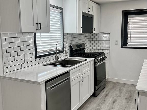 Remodeled manufacture homeBeautiful kitchenGas stoveNew kitchen cabinetsNew faucetsCounter topsLight fixtures