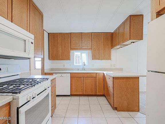Welcome to this 3 bed, 2 bath 1983 mobile home located in the desirable all ages park of Polynesian Village in Peoria, Arizona! This home is perfect for those seeking comfort, convenience, and affordability in a great location. The kitchen has solid surface countertops and opens into the great room. Outside there is a large, two car covered patio. The Polynesian Village community offers plenty of amenities for residents to enjoy, including a clubhouse, pool, spa, and fitness center. Plus, this all ages park is conveniently located near shopping, dining, and entertainment options, making it the perfect place to be home.