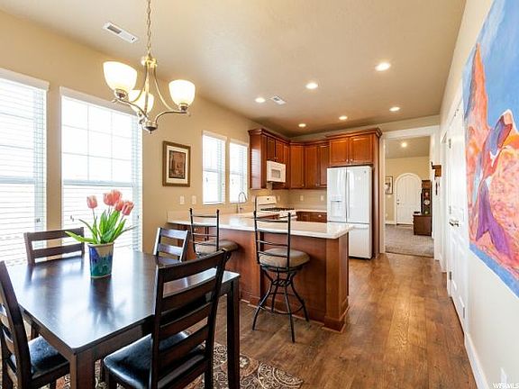 Fantastic one level living in Garden Park! One of the best locations in all of Daybreak. Home fronts on green space and is a short walk across the street from the lake with all it's amenities. The property is immaculate - just under 2 years old and better than new - just move in! Wonderful open floor plan with vaults, lots of windows and ambient light. Upgraded kitchen with gas range and trim package. Spacious master suite with en suite bath and a large walk in closet. Two well sized guest bedrooms are private from the master. Breezeway adjacent to kitchen has room to relax and enjoy the outdoors. The two car garage has extra storage and room for large cars or trucks.Lots off additional storage in 4 foot storage under home. The Garden Park amenities are second to none with a pool, clubhouse, tennis courts and the lake. Free usage of the kayaks,canoes and sailboats for the lake. Close to the U of U Health center and Trax. This home and location are outstanding!