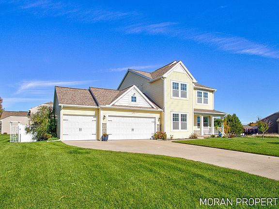 Welcome Home to 10953 Pine Cone Ct in the highly sought after Pine Meadow neighborhood! Nestled on a beautifully manicured corner lot, this stunning home offers exceptional curb appeal, privacy, and space for everyone. The main floor features a flex room, 1/2 bath, mudroom, formal dining room, a large kitchen with ample storage, and a spacious living area with access to the deck—perfect for entertaining or relaxing outdoors. Upstairs, you'll find four generously sized bedrooms and two full bathrooms, including a luxurious primary suite with a soaker tub, walk-in shower, dual vanity, and a WIC. A convenient second-floor laundry room completes the upper level. The walk-out lower level is partially finished, with a fully completed movie room, ready for your next film night! The remaining space, including a bathroom, additional living area, and potential wet bar, is drywalled and plumbed, just waiting for your final touches. 3 stall garage, common area with a pond, and Zeeland schools!