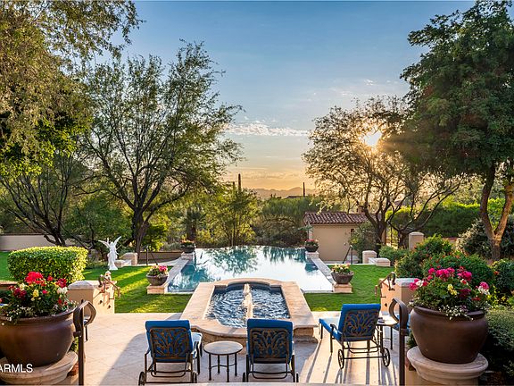 SILVERLEAF CLUB GOLF MEMBERSHIP AVAILABLE - Set on 3.6 private acres in the coveted Upper Canyon of Silverleaf, this exceptional Mark Candelaria designed Mediterranean estate embodies the pinnacle of luxury living in Scottsdale's most exclusive enclave. Crafted with exquisite architectural detail and maintained to perfection, this 10,429 sq. ft. residence offers a seamless blend of refined elegance, privacy, and sophistication. The home welcomes you with intimate courtyards, graceful archways, and hand-crafted finishes throughout. Thoughtfully designed living spaces flow effortlessly between indoors and out, capturing panoramic mountain vistas to the north and east and glowing city lights and sunsets to the west. The main residence offers five ensuite bedrooms and seven and a half baths, including a luxurious primary wing with a private sitting room, dual his-and-her bathrooms, and custom dressing areas. A richly appointed library/office, custom theatre, temperature-controlled wine room, and a series of charming loggias and patios create a sense of resort-style comfort and quiet elegance. A 928 sq. ft. detached guest casita provides an ideal retreat for guests, complete with a full kitchen, living room, and bath. The lushly landscaped grounds feature tranquil gardens, shaded terraces, and a private auto court with six-car garages, offering both beauty and functionality. Residents of Silverleaf enjoy an unparalleled lifestyle within the guard-gated Silverleaf Club, home to one of the Southwest's most celebrated Tom Weiskopf-designed golf courses, a world-class spa and fitness center, and elegant dining and social venues that foster a true sense of community and exclusivity. This estate is a testament to timeless design and desert luxury - an extraordinary retreat for those who value beauty, craftsmanship, and the ultimate in Arizona living.