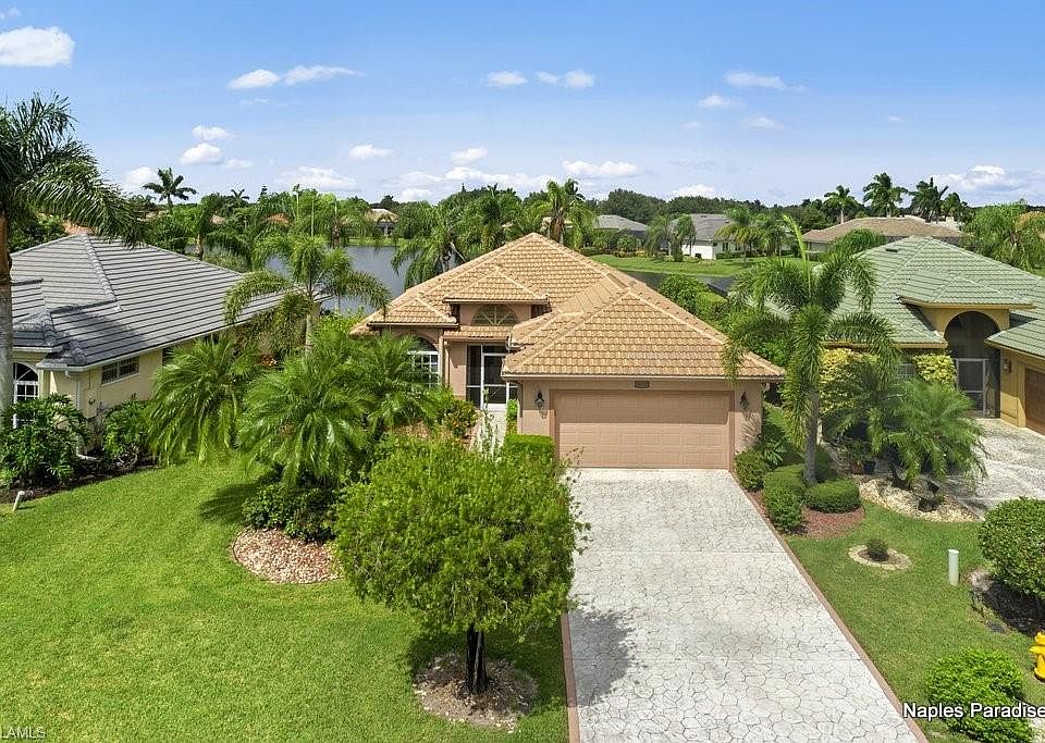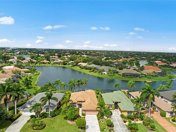 Spacious Aruba model with west-facing lot overlooking lake. Open concept living with custom tile on the diagonal tile with custom inlay, etched glass throughout. Master/on-suite bath w/walk-in closet -study/3rd bedroom. Pool/Spa has spillover fountain, outdoor kitchen & outdoor shower. NEW tile roof (2019), gutters/soffit. Accordion hurricane shutters on all doors/windows. Central water w/reverse osmosis. Private dock option w/approval for easy access to the 88-acre community lake accessed by paddle/electric boat, kayak or canoe. Gated entry w/24 hr guard, fitness, 9 har-tru tennis courts w/ tennis pro on staff, off-site reciprocal golf, community pool, clubhouse/pub/restaurant, propane fire pit at pool, public fishing pier/dock to access amenity campus on your own boat! 2.6 acres of walking paths wind thru 565 clustered single family homes with lushly landscaped lots. Longshore is home to seven miles of pristine shoreline with cranes, osprey and ibis. This community is ideal for empty nesters, families or seasonal living. A+ schools, close to beach, shopping/restaurants, easy access to I-75. HURRY and may this home yours! SEE important remarks related to showings and COVID-19.