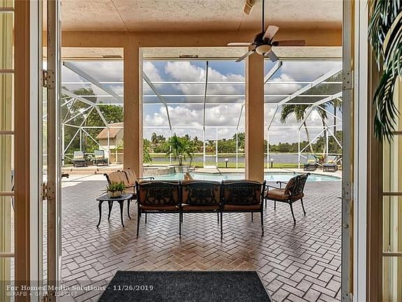 Spectacular lakefront single story 5 bedroom 4 bath home in Gated Mystique Estates. Large lot (.80932 acre) with screened enclosure around the large saltwater heated pool and spa. Includes an office/den/5th bedroom, sunken bar, and 3 car garage. 141 feet of water frontage, 14 foot ceilings, central vacuum system, ALL COPPER PLUMBING, Excellent public schools. Kitchen has a walk in pantry and large cooking island which opens onto the breakfast and family rooms. Master suite comes with two huge walk-in closets. Cabana full bath with direct access to the pool patio area. SqFt Living Area and SqFt Total are derived from Broward County Property Appraiser web site.