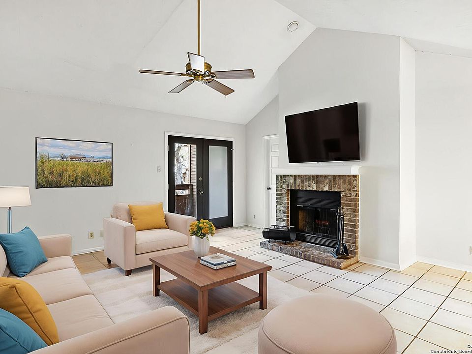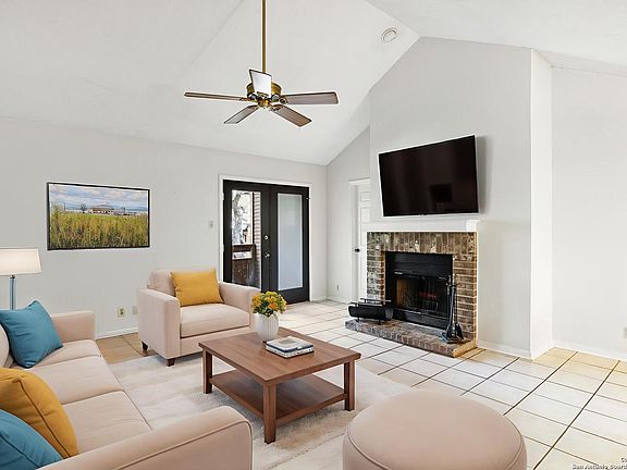Step into the charm and comfort of Whisper Hollow, where this inviting condo blends style, convenience, and functionality with an open living area featuring vaulted ceilings, warm tile flooring, and a cozy brick fireplace, a bright kitchen with abundant cabinetry and a pass-through bar, and a split floor plan offering both privacy and flexibility. The spacious primary suite boasts a custom walk-in closet with rails that allow for adjustable shelves and drawers, creating a smart storage solution, while the bathrooms include full tubs and plenty of storage for everyday ease. A private covered patio provides the perfect retreat for morning coffee or evening relaxation, and with its quiet community setting plus easy access to the Medical Center, USAA, shopping, dining, and major highways, this condo delivers the perfect balance of practicality, comfort, and low-maintenance living.