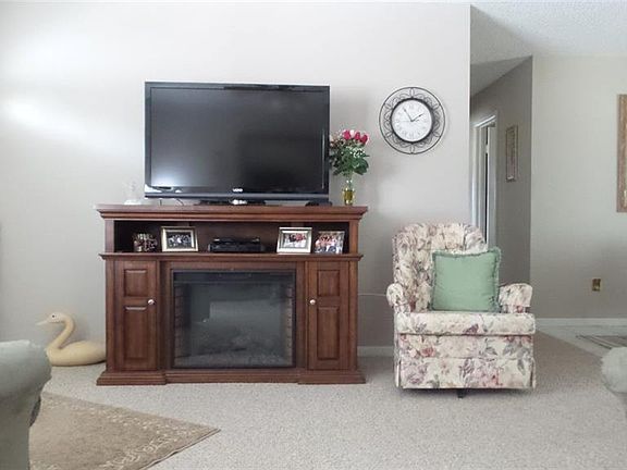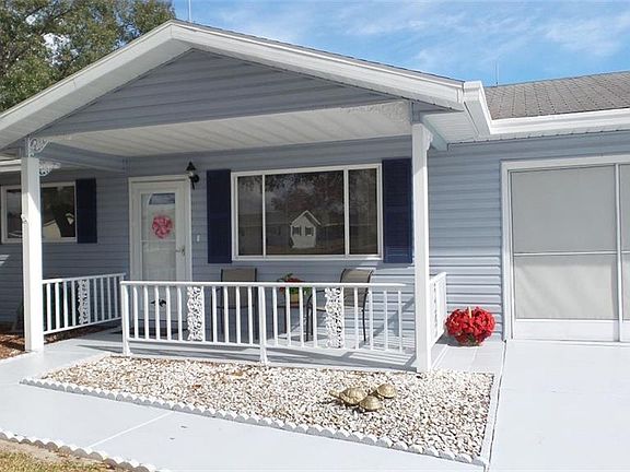 Immaculate 2 BR, 2 BA with great view from glassed lanai that was built as part of original floor plan. Inside laundry. Double garage with work office and exercise area. CAN BE HEATED AND COOLED. Nice attractive front porch and under roof open storage area facing backyard. Owner has replaced siding and a pride in home ownership as you enter the home.