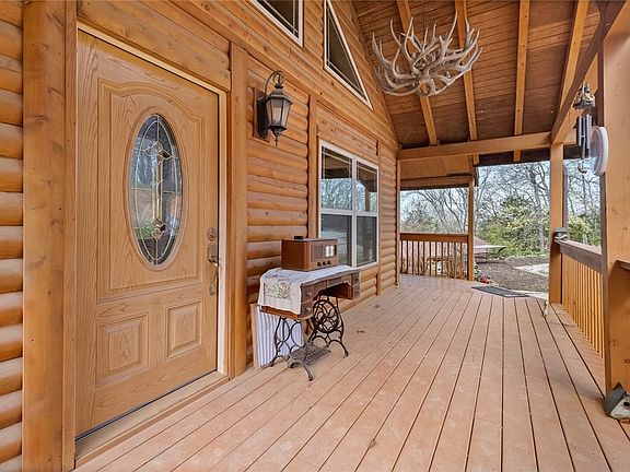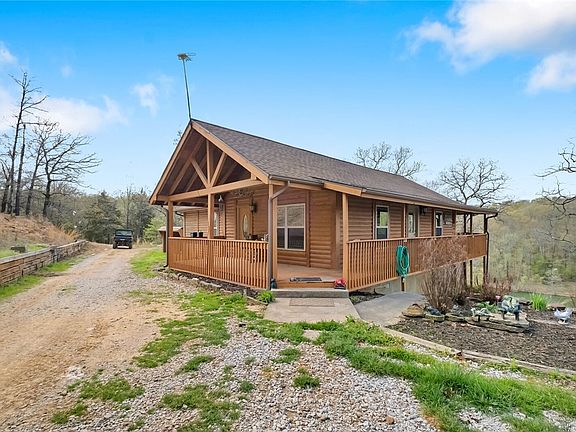 OZARK PARADISE! If you are looking for your own private & remote setting then this is it. Very private & serene property at the end of a winding lane along the mountainside that opens to gorgeous panoramic views of the Ozark mountains. This log home sits high on the bluff overlooking your own private stocked pond and breathtaking views of the Ozark Mountains. This property is nearly 15 acres with an additional 10 acres that could be purchased seperately. The D Log home is made of 8" Northern White Cedar Logs shipped from Maine & constructed on site. Knotty Pine vaulted celings in the open concept main living/kitchen area. 2 Bedrooms & 2 baths on the main level. Wood floors & stained stone-like floors give this a true mountain cabin feel. Downstairs is a full finished walk-out basement with second living area & kitchenette with bonus area. Covered Decks on 3 sides. Additional 1200 sq/ft building that could be guest house or shop. Abundance of wildlife & only 20 minutes from Fayetteville. Endless Possibilites!