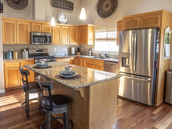 Beautiful Nordic Built Home in great location featuring vaulted ceilings, granite countertops, oak cupboards, loads of cabinet and countertop space, and stainless appliances in an open floor plan with a cozy gas fire place, and cherry hardwood flooring in a large great room. The primary suite is on the main level featuring plush carpeting, a large walk in closet, large bathroom with soaker tub, walk in shower, large countertop space, bathroom storage, patio access, and decor nook. All bedrooms are on the main level with large closets and high ceilings. There is a large bonus room upstairs with full wet bar and room for storage. This home sits on a fenced lot with beautiful landscaping, garden shed, covered patio and more. All of this in a luxury quiet neighborhood near schools, shopping, and more! Open house 8/20 from 12-2!