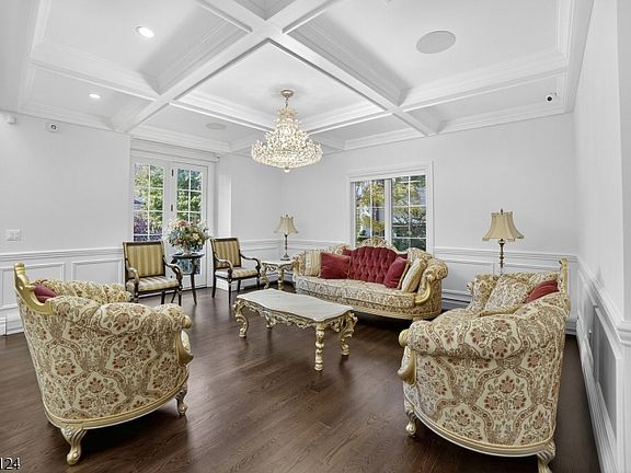 Step into exceptional luxury with this 5-bed, 4.5-bath center-hall Colonial that blends timeless elegance with modern sophistication. The grand two-story foyer features a sweeping curved staircase, soaring ceilings and rich architectural woodwork, including beautifully detailed coffered ceilings. The chef's kitchen is a showstopper, highlighted by a leathered-granite waterfall island, designer cabinetry and premium appliances, ideal for both entertaining and everyday living. The home is fully equipped for the contemporary lifestyle with advanced smart-home automation, high-end security features and multi-zone heating and cooling for total comfort and control. Outside, discover a true private oasis: a pristine gunite pool, spa-style hot tub and lush landscaping create a resort-like setting for recreation and relaxation. Craftsmanship and convenience meet in this exceptional estate.