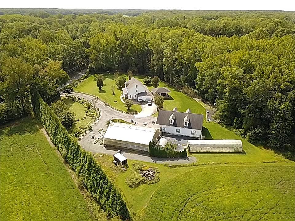 Discover the perfect blend of elegance and functionality in this stunning Colonial home nestled in the serene Southern New Castle County. This residence boasts five to six spacious bedrooms and 2.5 luxurious bathrooms, designed to accommodate your lifestyle seamlessly. Step inside to find a gourmet kitchen that will inspire your culinary adventures, featuring upgraded countertops and top of the line stainless steel appliances with a built in refrigerator, a double oven, and a commercial-grade six-burner stove. The inviting breakfast area and butler's pantry enhance the space, making entertaining a delight. The traditional floor plan flows effortlessly, showcasing a formal dining room and a cozy living area with a wood-burning living room fireplace, perfect for creating lasting memories. The interior is adorned with beautiful hardwood floors and plush carpeting, while energy-efficient double-pane windows bathe the home in natural light. Retreat to the master suite, complete with a walk-in closet and a spa-like bathroom featuring a jetted soaking tub for ultimate relaxation. Outside, the expansive 11.82-acre farmable lot offers a tranquil escape with lush trees and a picturesque garden view. Multiple balconies , patios and a wrap-around porch paired with a covered gazebo and outdoor kitchen, yes the imported pizza oven is included, invite you to enjoy the outdoors. The extensive 60 x 40 garage space (with room for more than 10 vehicles)offering a fully finished second floor, a full bath and a kitchen area. Additional structures like a hoop barn and fully functioning and climate controled 60 x 40 greenhouse provide endless possibilities for hobbies and farming. The garage and greenhouse have individual climate controls and electric while tha main house and greenhouse are also connected to back up generators. This exceptional property is not just a home; it’s a lifestyle waiting to be embraced. Don’t miss your chance to make it yours!