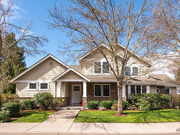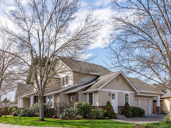 OPEN HOUSE SUNDAY, APRIL 14th 1-4PM Exquisite custom-built residence in a prime location, just moments away from bike paths, parks, the river, and Autzen Stadium. This meticulously maintained home boasts an inviting open floor plan with 18-foot vaulted ceilings and a stunning floor-to-ceiling stone fireplace in the living room, creating a cozy ambiance. The Chef's Kitchen is a culinary delight, featuring a spacious granite island with a sink and breakfast bar, granite countertops, Wolf stainless steel gas appliances, and double ovens, perfect for entertaining guests. A versatile space, whether used as a family room, den, or office, is enhanced by French doors for added privacy.Beautiful Brazilian teakwood floors flow seamlessly throughout the home, adding warmth and elegance to the space. The luxurious Primary Suite on the main level offers French doors leading to the backyard oasis, where you can unwind and relax. The attached Primary Bath is a sanctuary with a large soaking tub, walk-in shower, walk-in closet, and a generously sized vanity with dual sinks and abundant natural light.For added convenience, there's separate parking and entry, ideal for a potential in-home office or guest quarters. Don't miss the opportunity to make this stunning property your new home!