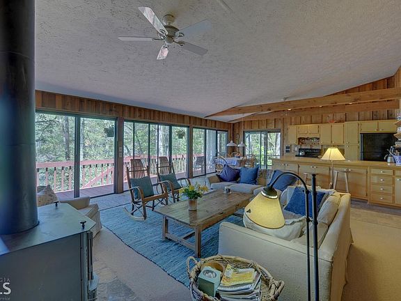 Escape the hustle and bustle of daily life to this lakeside retreat with end-of-road privacy. Ideally positioned on the Southern end of Lake Burton, the views facing North towards layers of mountains are spectacular! Once you arrive, step onto a large screened porch with ample space for ping pong and fun with friends. Sliding glass doors lead into a great room with open kitchen, dining and living room with stone fireplace. A wall of sliding doors provides ample natural light and countless sunset views. Kids will enjoy sleeping in the 3-bed bunk room. Rest well in the main level bedroom with bath. Upstairs, enjoy two additional guest rooms. A large open deck is perfect for entertaining with gentle stairs leading down to a 2-stall, 2-story boathouse.