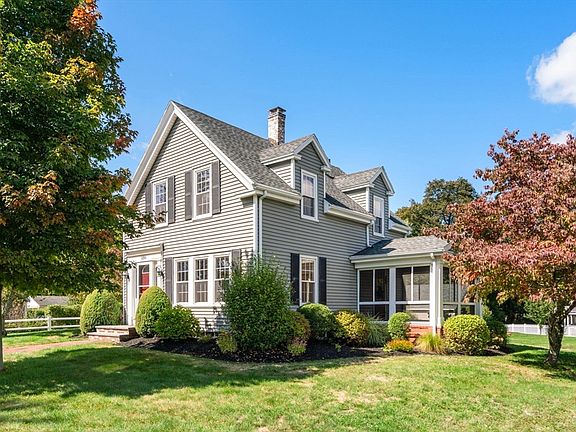 Step into timeless charm with this beautiful 19th-century Colonial, perfectly situated on a picturesque corner lot. This classic home offers three bedrooms upstairs and a warm, inviting layout on the main level, featuring an eat-in kitchen, spacious living room, and dining room accented by a charming brick fireplace. A cozy den/office opens to an enclosed screen porch—ideal for relaxing or entertaining. Hardwood floors flow throughout, complementing the home’s character and warmth. Additional highlights include 1.5 baths, a full basement, beautifully landscaped yard and a detached two-car garage. With plenty of space both inside and out, this property blends historic character with everyday comfort.