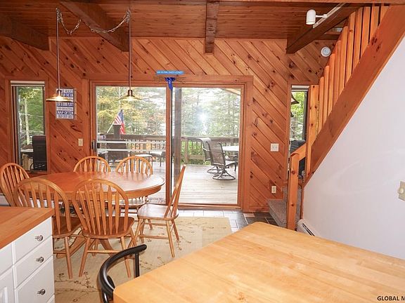 Great Sacandaga Lake Contemporary home with 50ft of lake frontage directly across the road, 1 bedroom, with relaxing deck, open kitchen & living room leading to a large open deck that offers a hot tub and filtered lake views. The lower level family room features custom storage, built in wine cooler, pool table and plenty of room for entertaining or over night guests. Recent updates include a whole house generator, split system aux;heating system, air conditioning, easy access 500 gal. seller owned propane tank, dock and walkway Septic is a 1200 gal. holding tank.