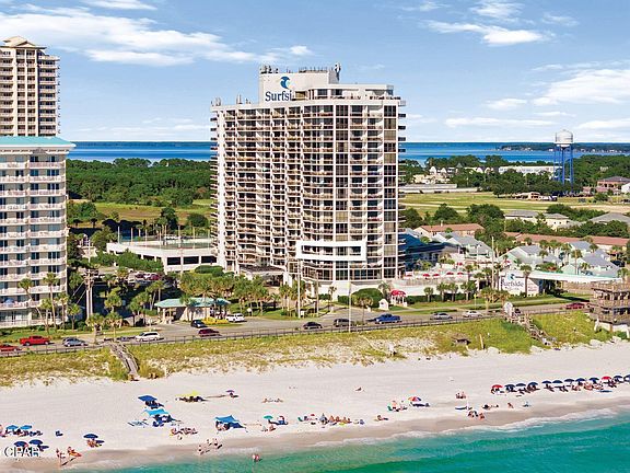 Panoramic gulf views define this versatile three-bedroom residence in Surfside Resort, where every bedroom and the main living area open to a balcony overlooking the sugar-white sand and emerald waters below. Designed for both enjoyment and investment, the unit offers a flexible lockout configuration—rent it as a full three-bedroom, three-bath condominium or as separate two- and one-bedroom suites to maximize income potential. The interior features a bright coastal palette with tiled counters, updated appliances, and generous gathering spaces that frame the water beyond. Each bedroom offers its own balcony access, ideal for morning coffee or sunset views that stretch across the horizon. Surfside Resort is celebrated for its full suite of resort amenities, including a beachfront pool and hot tub, private beach access, fitness center, 2 private tennis courts and shuffleboard courts, and on-site dining at Royal Palm Grille. Guests and owners also enjoy the convenience of covered parking, interior corridors, and the indulgence of an in-house spa and salon. This turn key condominium captures the essence of effortless gulf-front living.