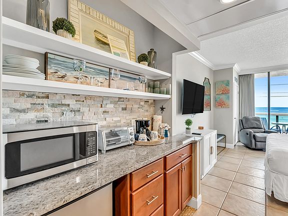 This beautifully renovated Gulf-front studio offers breathtaking views of the emerald-green waters and sugar-white sands of the Gulf. Located on a prime stretch of Miramar Beach, this fully furnished condo is a turnkey opportunity--perfect for a weekend get-away or income-producing rental. Surfside Resort is a very popular family resort and there is always something for the whole family to do, featuring a large pool deck and private beach walkover, seasonally heated pool, two hot tubs, sauna, baby pool, basketball, tennis and pickleball courts, BBQ grills and on-site rental management. Surfside has covered parking, heated/cooled interior corridors, the Royal Palm Grille restaurant, poolside bar & day spa! What else is on your wish list? All Owners have access to the community room and this studio comes with two parking spaces in the owners garage.