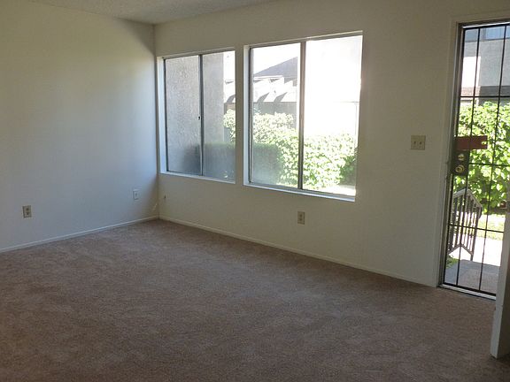 This bright and sunny end unit 2 story apartment has 2 bedrooms, 1.5 bathrooms, and carport parking. There is fresh paint and new carpet throughout the unit. Downstairs is the living room, the kitchen with plenty of cabinets that have been newly painted, and a convenient half bathroom. There is a patio off the kitchen, and the patio leads to the community laundry room. The large primary bedroom has double doors and two closets! Each bedroom has its own wall air conditioner. The rent includes water and trash. This apartment is ready NOW. Owners pays water and trash. One year lease.
