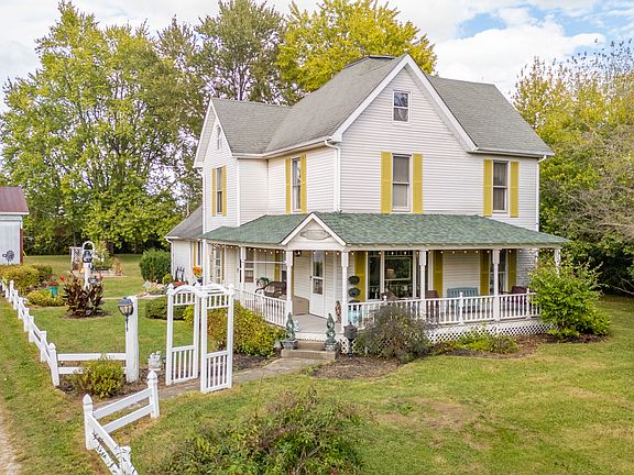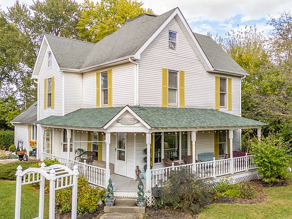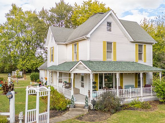 Welcome to 1096 W State Road 38 in Pendleton! Step back in time with this beautifully preserved 1889 farmhouse, set on 8 picturesque acres. This 5-bedroom, 2.5-bath home blends historic charm with functional living space, offering room for everyone - with 2 bedrooms on the main level and 3 additional bedrooms upstairs. Enjoy multiple gathering areas with two inviting living rooms, a formal dining room perfect for family meals, and a super cute farmhouse-style kitchen. The spacious laundry room adds convenience for storage. Upstairs, you'll find tons of usable attic space ready for storage or future possibilities. Outside, you'll love the detached 3-car garage and a massive barn that's ideal for animals or storage - with some work, it could be a showpiece.