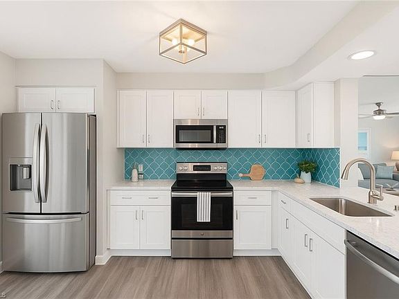 Welcome to this beautifully updated and fully furnished 3-bedroom, 2-bath top-floor corner unit, perfectly situated in the heart of Naples. Just under 3 miles to the white sands of Clam Pass Beach, this condo offers the ideal blend of tranquility and convenience. Enjoy an open floor plan with vaulted ceilings, hard surface flooring throughout, and neutral tones that create a light and inviting atmosphere. The kitchen features plantation shutters, newer appliances, and all-new window treatments throughout the home. Relax on your private screened balcony with peaceful views, or take advantage of the community amenities including a pool, tennis, pickleball, and more. Located adjacent to Quail Run Golf Course, where play is available without the fees of a bundled golf community. This unit includes a dedicated parking space directly below, plus an extra storage unit for added convenience. Centrally located just off Pine Ridge Road, you’re minutes from shopping, dining, and Naples' best beaches.